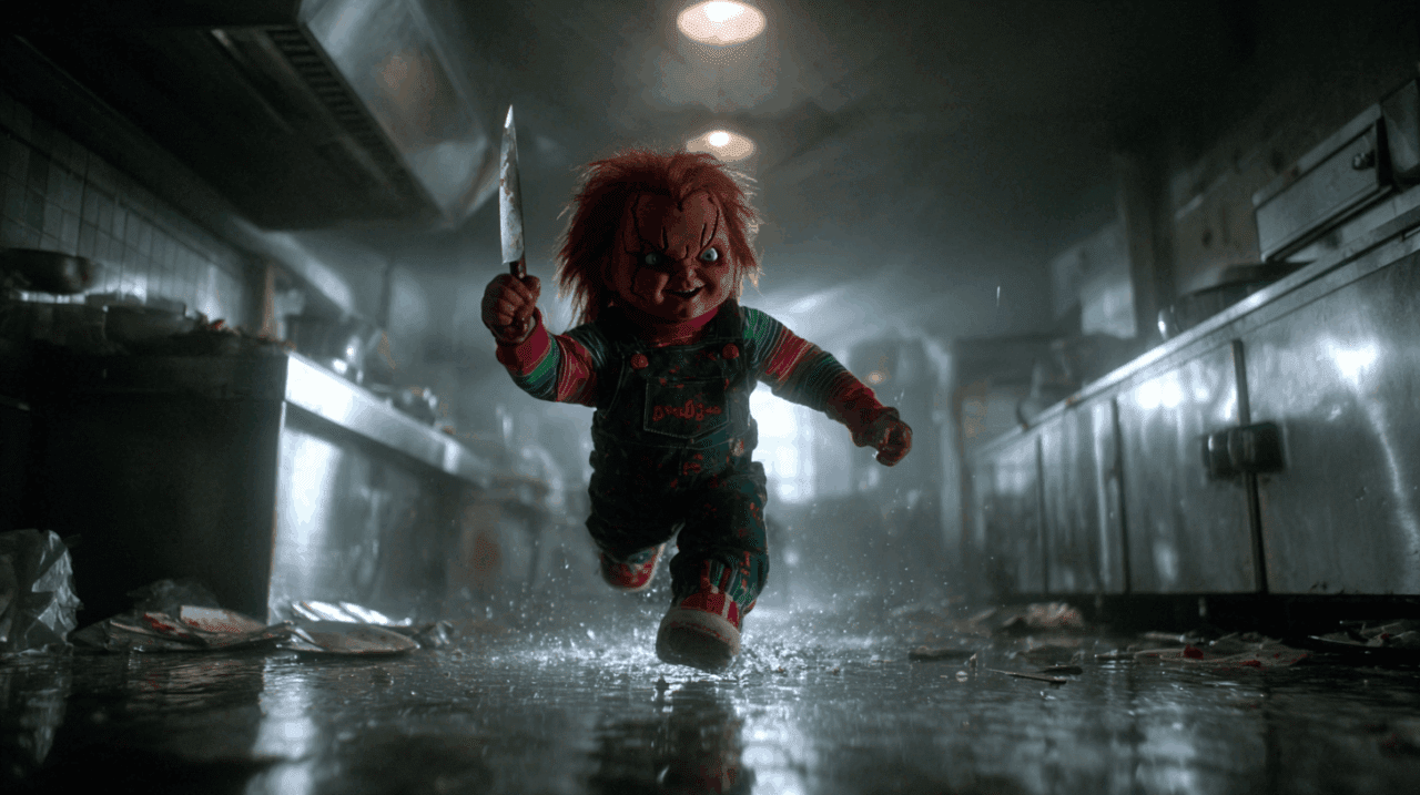 Quién es Chucky preparando un ataque en un pasillo oscuro