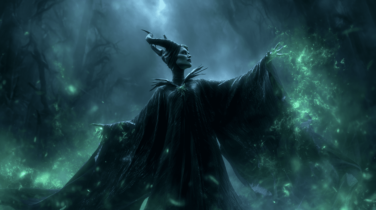 El hechizo funciona como un escenario invisible. No tiene muros ni fronteras físicas, pero define la realidad de todos los personajes. Para Maléfica, es el lugar donde su poder se materializa y su palabra se hace ley. A través del encantamiento, transforma la historia y demuestra que su autoridad supera los límites del espacio físico.