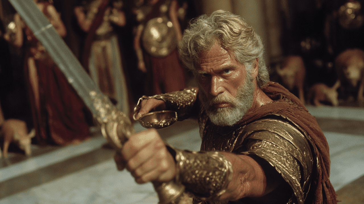 El clímax de su evolución ocurre durante la prueba del arco, un certamen que solo él puede ganar debido a su fuerza física y técnica. Al tensar el arco y disparar la flecha a través de las doce hachas, Odiseo recupera simbólicamente su identidad masculina y real frente a todos los presentes. La matanza posterior de los pretendientes, iniciada con el disparo a la garganta de Antínoo, es un acto de brutalidad necesaria para restaurar el orden cósmico y social que había sido violado. Odiseo cierra las puertas del gran salón y ejecuta sistemáticamente a una generación entera de nobles de las islas, actuando como un agente del destino que limpia la casa de la corrupción acumulada durante su ausencia.